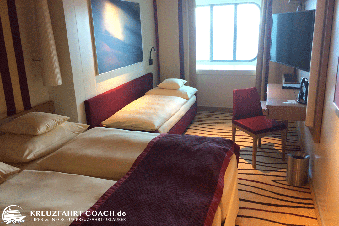 Hier siehst Du eine Meerblickkabine für die Belegung mit drei Gästen: