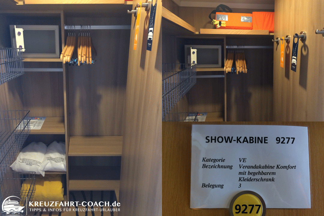AIDAperla Kabinen Bilder von Verandakabine 9277 mit begehbarem Kleiderschrank