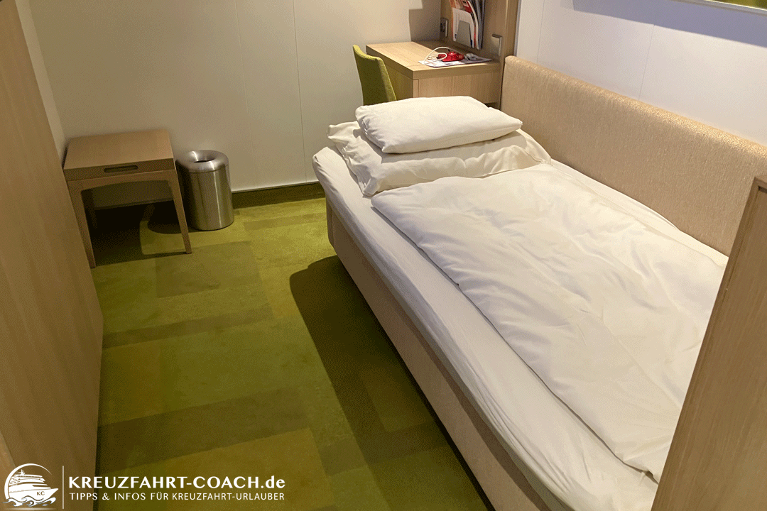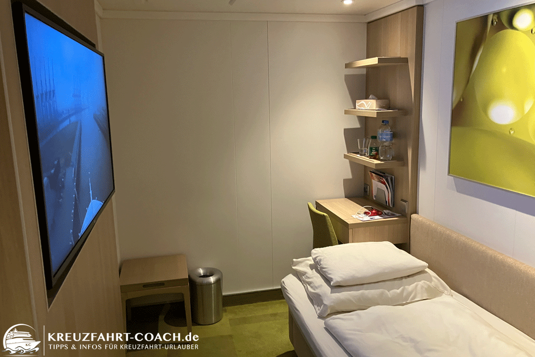 Es gibt nur sehr wenige Einzelkabinen auf den AIDA Schiffen. Hier bekommst Du einen Einblick in die Einzelkabine 9170 auf AIDAnova: