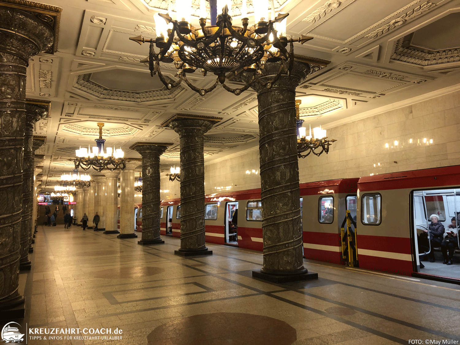 Busse und die Metro sind in St. Petersburg sehr kostengünstig. Busse kosten meist 50 -100 Rub, also ca. 1€, und die Metro kostet beim Einsteigen 55 Rub pro Person, also ca. 80ct. Einmal in die Metro eingestiegen ist es egal, wie lange und wie weit man fährt, der Preis ist immer identisch. Auch Umstiege sind problemlos möglich. Da letztere im Schnitt alle 2 Minuten fährt (und das sehr zuverlässig), ist sie ein hervorragendes Fortbewegungsmittel für die Innenstadt. Davon abgesehen sind die Metro-Stationen St. Petersburgs mit ihren prunkvollen Kronleuchtern, Mosaiken und den weltweit tiefsten Stationen eine Sehenswürdigkeit für sich: